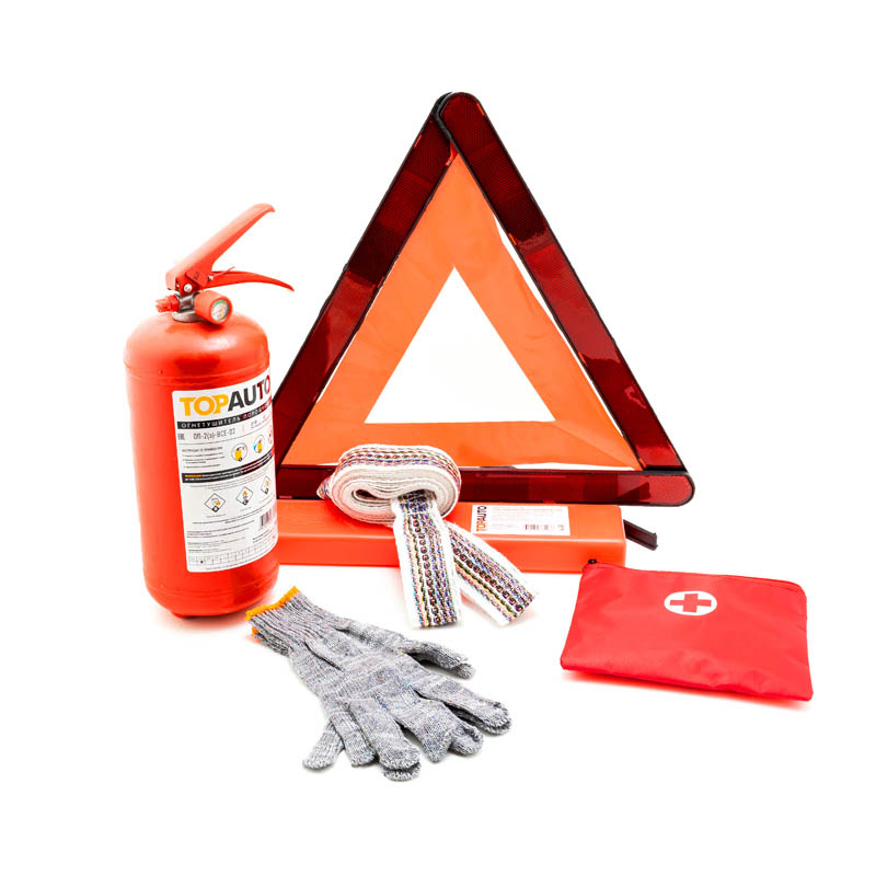 Наборы автомобилиста производства компании TOPAUTO содержит всё необходимое для нештатных ситуаций на дороге. Набор упакован в удобную сумку, экономящую место в багажнике.
