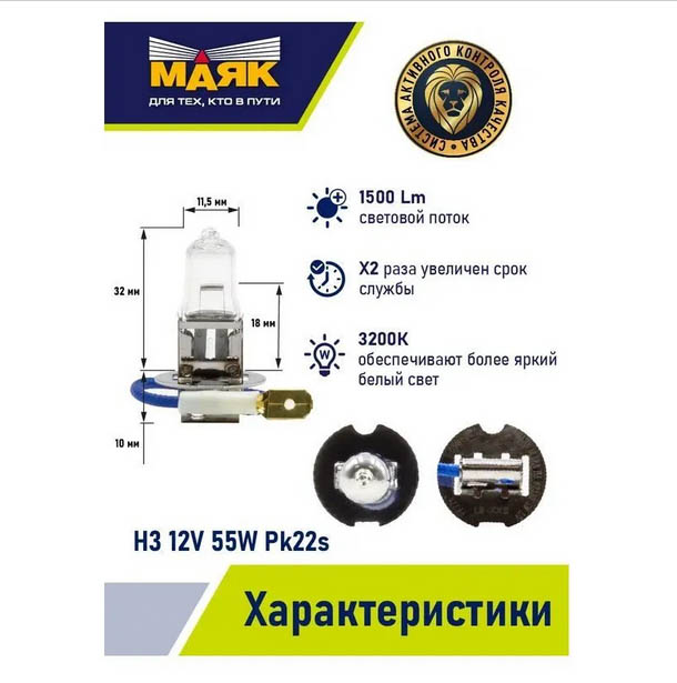 Н 3 12V 55W PK22s ORIGINAL PRO "Маяк" OEM 02320