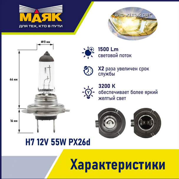 Н 7 12V 55W PX26d ORIGINAL PRO "Маяк" OEM 02720