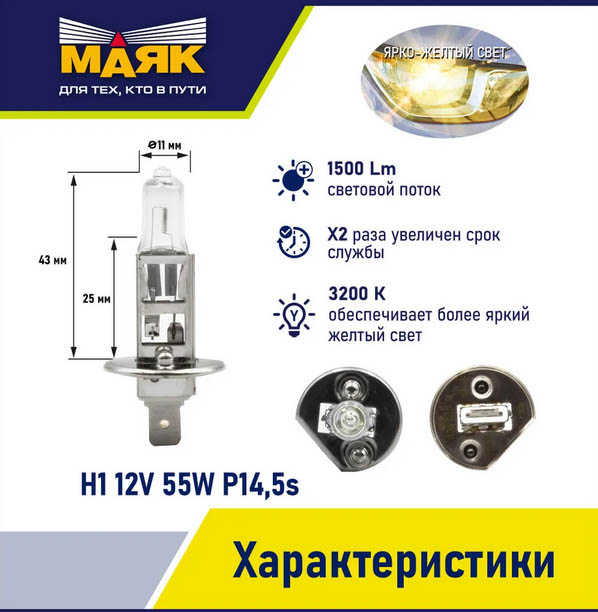 Н 1 12V 55W P14.5s ORIGINAL PRO "Маяк" OEM 02120/BL Лампа автомобильная галогенная |