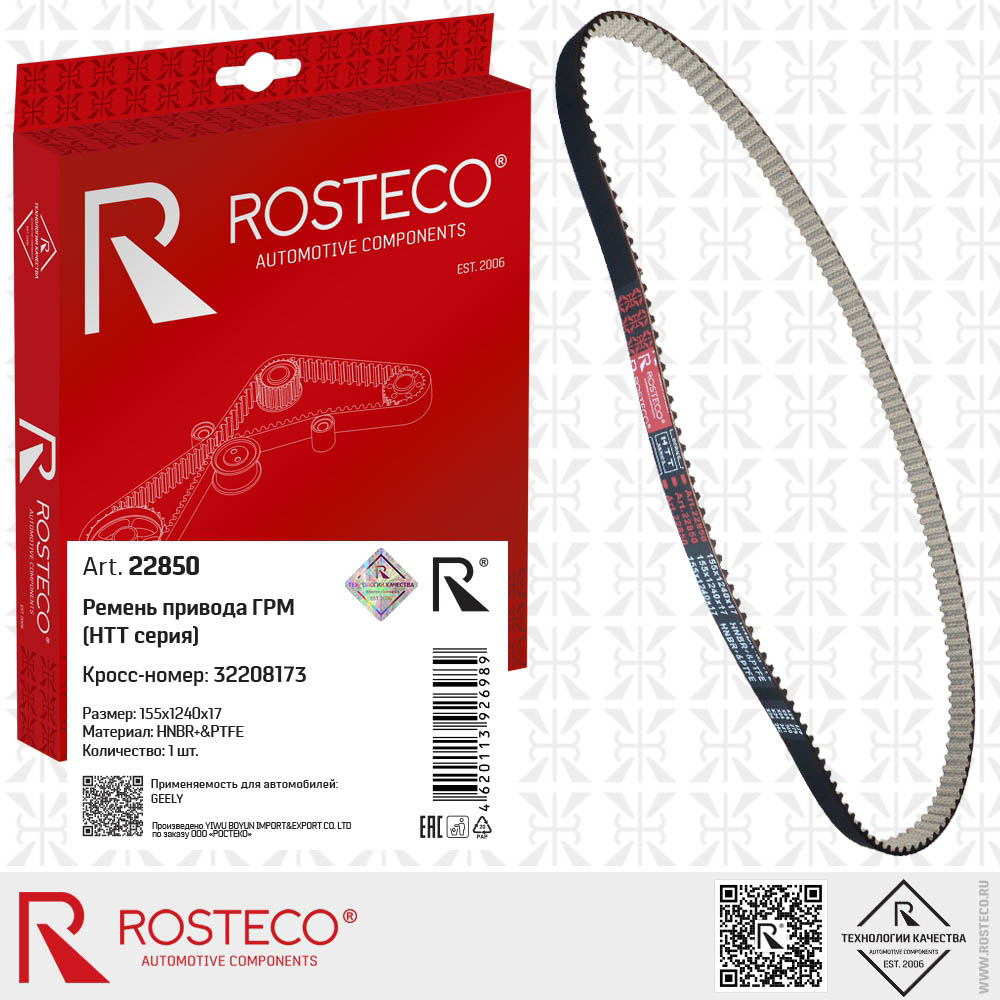 Ремень ГРМ ROSTECO отвечает всем современным требованиям производителей автомобилей. Высокий КПД зубчатого ремня обеспечивает синхронную работу привода газораспределительного механизма двигателя на протяжении всего срока службы. Благодаря идеально подобранным материалам обеспечивается высокая стойкость как к высоким, так и к низким температурам. Его сложная конструкция, состоящая из износостойкой ткани, нерастяжимого корда и устойчивых эластомеров обеспечивает превосходные результаты по производительности и долговечности. Высокая прочность на разрыв и стабильность длины является образцовой среди аналогов!