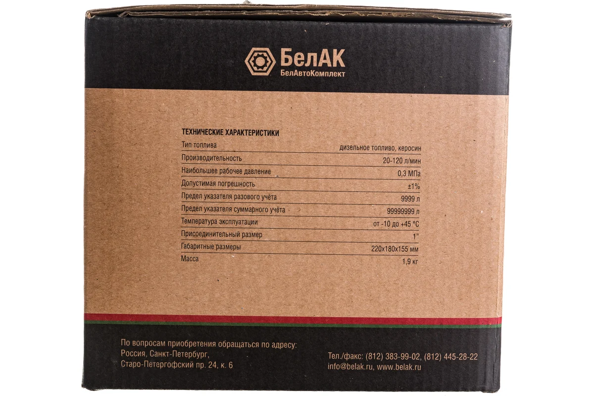 Счётчик для дизельного топлива БелАК БАК.12003 служит для учета жидкости, отпускаемой во время заправки транспортного средства. Модель изготавливается с учетом нормативных стандартов, что гарантирует высокую точность измерения. Для удобства считывания показаний на корпусе изделия располагаются большие цифры. Устройство отличается надежностью, легкостью монтажа и калибровки на рабочем месте.